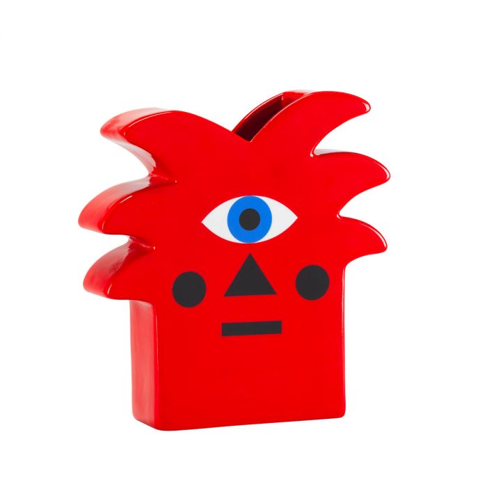 Oggian vases de Qeeboo par Marco Oggian. Ces vases, caractérisés par des figures animales, humaines ou végétales et des couleurs primaires vives, créent une famille de produits céramiques qui constituent ensemble un paysage figuratif qui représente au mieux la vision fictionnelle du designer. Votre vase Oggian fera tourner les têtes simplement en le plaçant sur n'importe quelle table ou étagère de la maison.