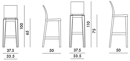 Grand : L 38 x H 110 x larg. 46 cm (Hauteur d'assise 75 cm)