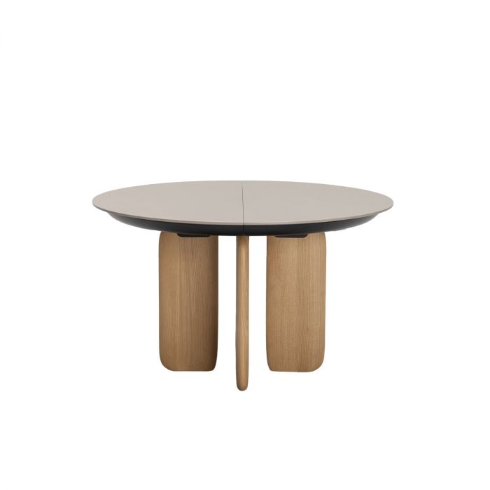 Pala de Kristalia par Monica Graffeo. Pala est un système de tables rondes et ovales dont le pied rappelle la lame du gouvernail. Disponible en version fixe, il se distingue par sa version extensible fluide et innovante, une caractéristique distinctive des collections de tables Kristalia.