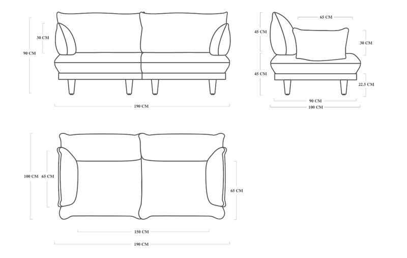 H 90 x L 190 x Prof. 100 cm