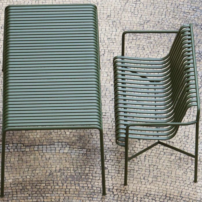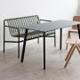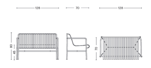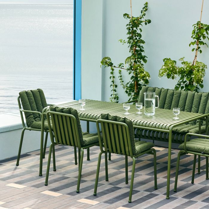 Palissade Canapé Extérieur de Hay. Le banc de jardin Palissade est le mélange parfait entre design et modernité. Palissade est une collection de meubles d'extérieur conçu par Ronan et Erwan Bouroullec pour HAY. La collection a été conçue pour s'adapter à une grande variété d'environnements: cafés, restaurants, jardins, terrasses et balcons. La construction permet une large gamme de typologies avec un langage formel commun. Des tabourets et des bancs à des chaises et des tables, des chaises longues et des canapés, la collection comprend 13 éléments différents, unis non seulement par leur image graphique, mais aussi par leurs caractéristiques communes: ils sont forts sans encombre, élégant sans être fragiles.