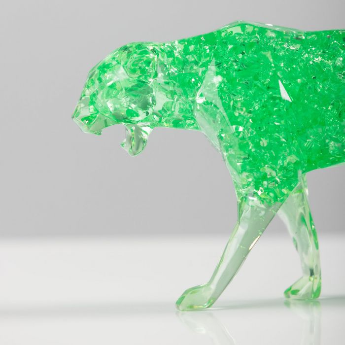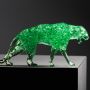 Panther bubble de Richard Orlinski. Parée d’un vert tendre, comme la jungle sous le soleil après la pluie, Green Bubble Panther avance d’un pas décidé. Sa gracieuse silhouette est mise en valeur par une multitude de bulles, disséminées au cœur de la sculpture. Des pattes, une queue et une tête presque transparentes, contrairement au reste du corps, plus dense. À la subtilité du vert s’ajoute le raffinement d’une matière toute en nuances.