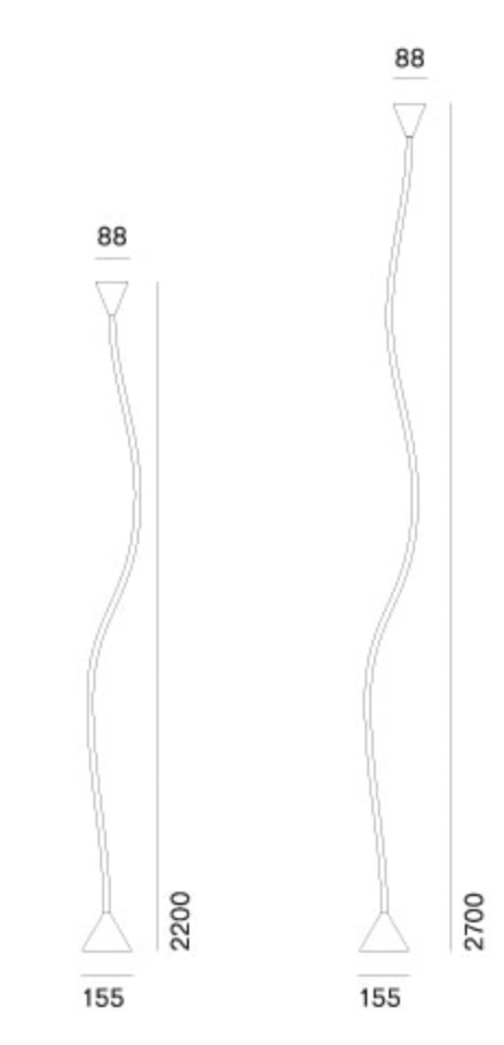 Tailles 2 : H 270 x diam. base 180 x diam. abat-jour 105 cm