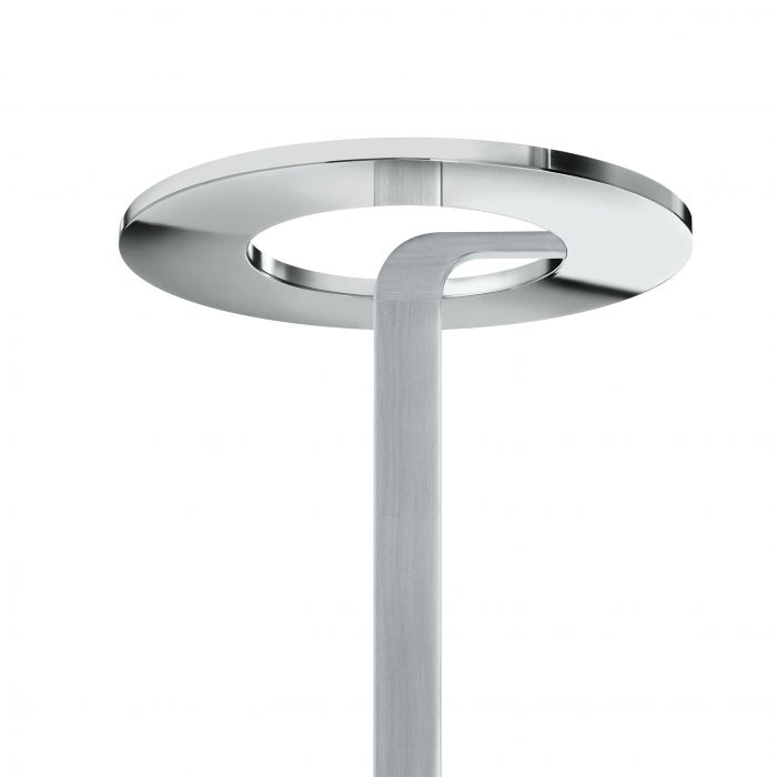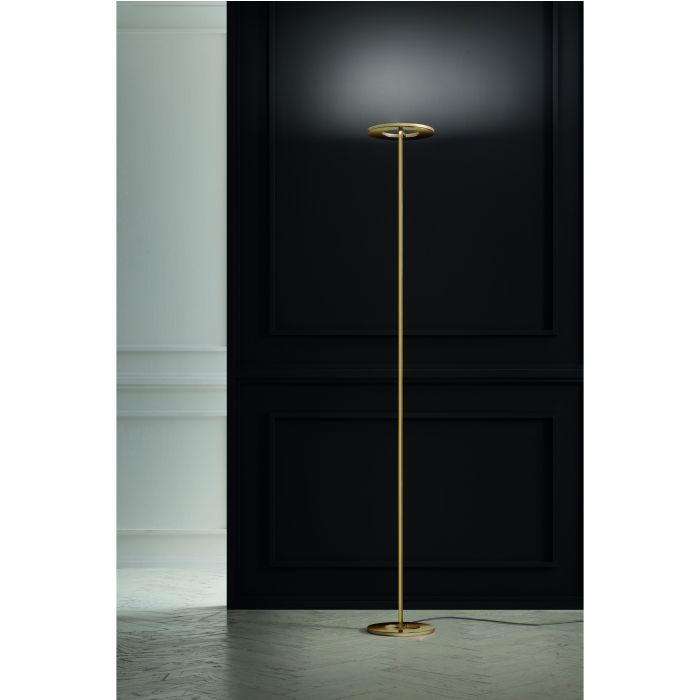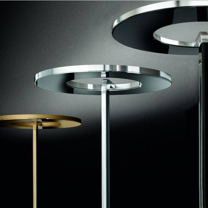 Lampadaire pour intérieurs, sa lumière indirecte est d’un confort visuel optimal. Ses deux anneaux brillants, égaux et opposés sont accouplés et raccordés à la tige rectangulaire par une structure en aluminium. Structure diamantée pour la version chrome et noire, et émaillée pour la version laiton. Un capteur de proximité dans la tige gère l’enclenchement/déclenchement et l’alimentation au passage et à l’approche de la main.
