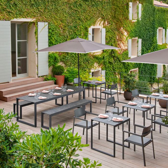 Perspective de Vlaemynck. Avec la collection Perspective, Vlaemynck explore des territoires plus contemporains pour offrir aux terrasses des hôtels et restaurants du mobilier extérieur facile à vivre et à entretenir. Les fauteuils terrasse en aluminium Perspective vous permettent de composer des espaces outdoor conviviaux et attractifs pour vos clients.