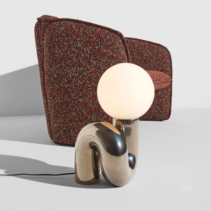 La lampe à poser Neotenic est le fruit de la première collaboration entre Petite Friture et le studio de design Jumbo. Les formes rondes et généreuses de la collection font à l’esthétique rassurante de l’enfance. L’intention des designers : susciter une émotion et créer un lien charnel entre l’homme et l’objet. Les coloris, signature de l’univers coloriel de Petite Friture, suggèrent l’image régressive de l’aubergine et de la sauce tomate. Le verre soufflé à la bouche de cette grande lampe à poser, laisse un aspect opalin et doux au toucher sublimant la sinuosité de la céramique et la qualité de la lumière. Déclinée en deux formats, cette lampe à l’allure « chunky » vient rejoindre le terrain de jeu des collections Libre garde de Petite Friture.