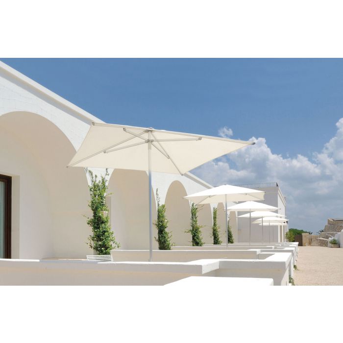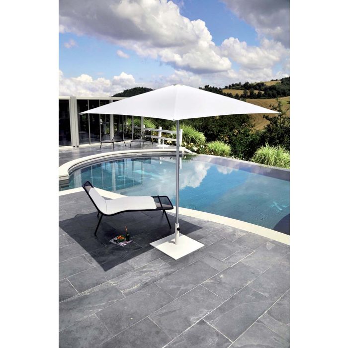 Piazzetta, design Christophe Pillet, est un parasol à tige centrale qui se distingue par sa qualité, sa robustesse et l'harmonie de ses formes. Il s'agit d'un accessoire idéal pour créer des zones d'intimité calmes et ombragées, même dans les petits espaces, qu'ils soient privés ou contract. Une variété de bases disponibles complète sa fonctionnalité.