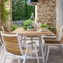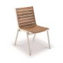 Matériaux : structure tubulaire aluminium laqué blanc, Assise en teck, finition naturelle (non huilé)