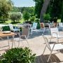 Matériaux : Aluminium laqué, teck massif, tissu Batyline
