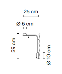 Matériaux : diffuseur polycarbonate, tige en acier, tête en aluminium et base zamak