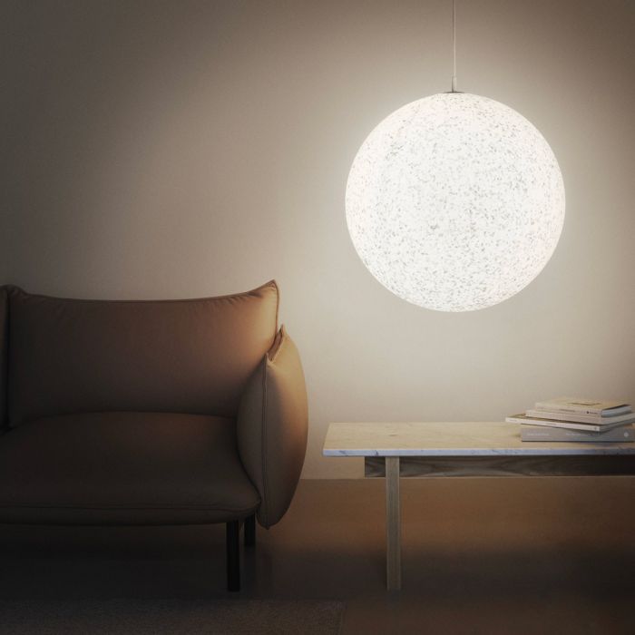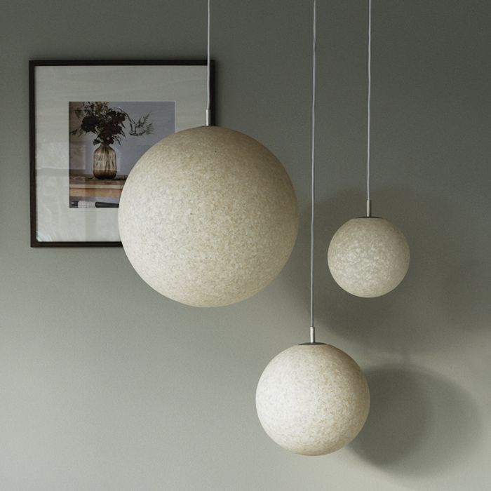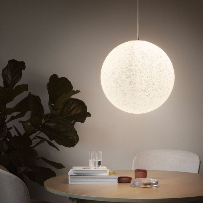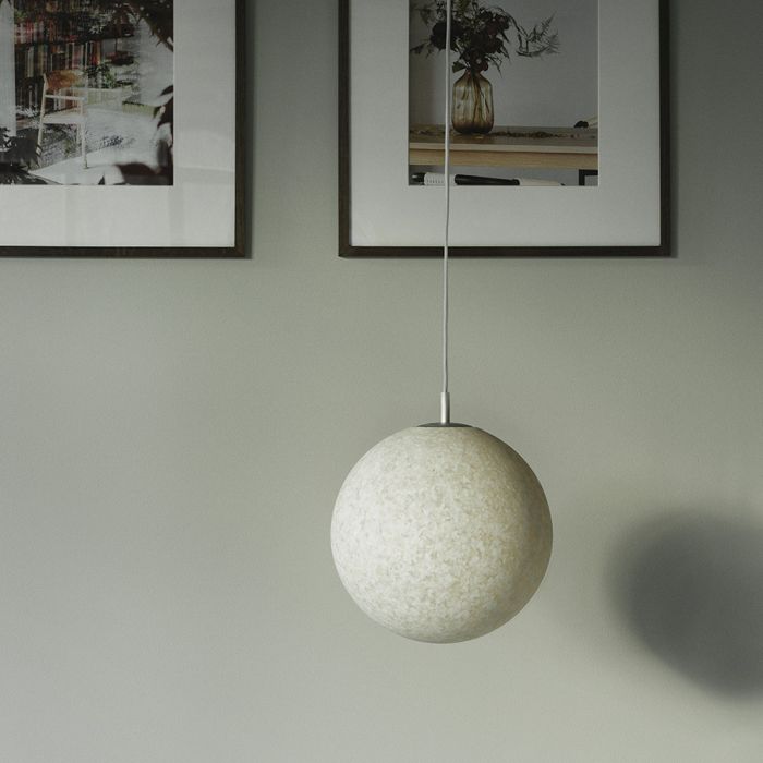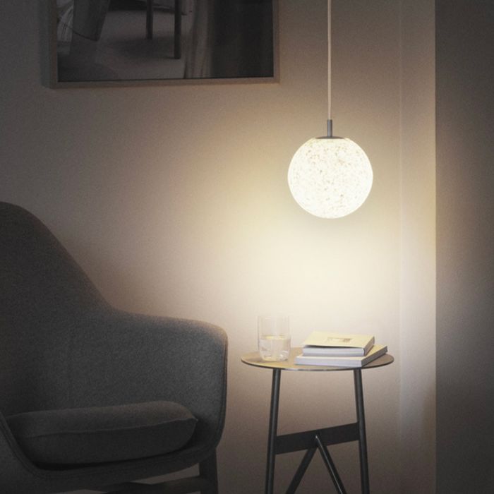 Pix Lamp n'est pas seulement un design esthétique, c'est aussi un design ingénieux. Pour la fabrication de l'abat-jour, des déchets plastiques de différentes nuances de blanc sont mélangés et granulés, avant d'être chauffés à un point de fusion de 120°, permettant au matériau d'être réchauffé et réutilisé en fin de vie sans altérer ses propriétés. Ce processus particulier permet un cycle de vie circulaire et présente un design où chaque abat-jour a sa propre composition de couleur unique. L'épaisseur du matériau donne à Pix Lamp un aspect opaque lorsque la lumière est éteinte. Lorsque la lumière est allumée, l'apparence du matériau se transforme, obtenant un aspect translucide, la lumière de l'ampoule traversant et mettant en valeur la structure granulée de l'abat-jour. Quel que soit l'endroit où Pix est placé, son langage de conception simple se fondra à coup sûr dans l'intérieur environnant, tandis que son abat-jour distinctif offre une lueur chaleureuse et charismatique.