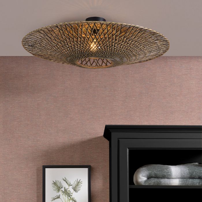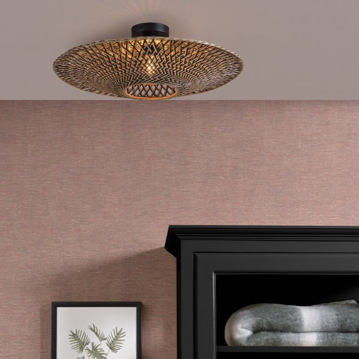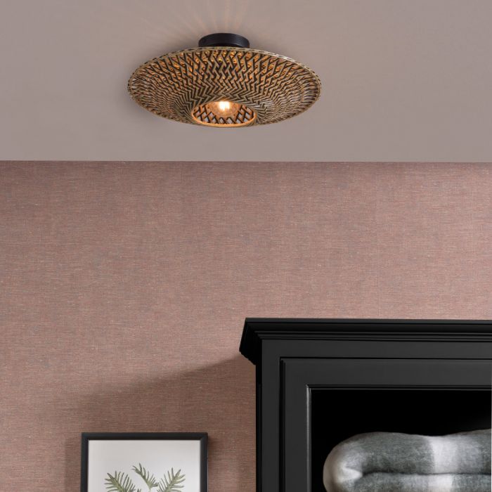 Plafonniers en bambou Bali tissés à la main en dises plats en trois tailles.