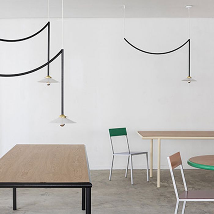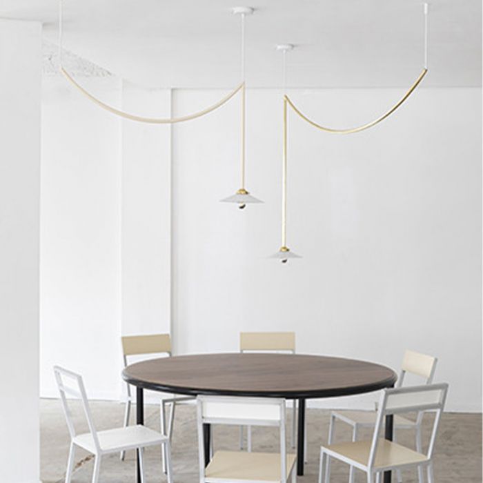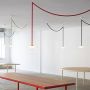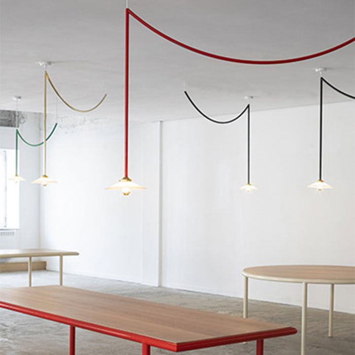 Avec Valerie_objects célébrant leur cinquième anniversaire, le duo de designers muller van severen a créé deux objets d'éclairage spéciaux qui créent l'ambiance festive. les plafonniers n°4 et n°5 reflètent la forme de guirlandes et de serpentines, dessinant des lignes ludiques et colorées dans l'espace.