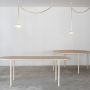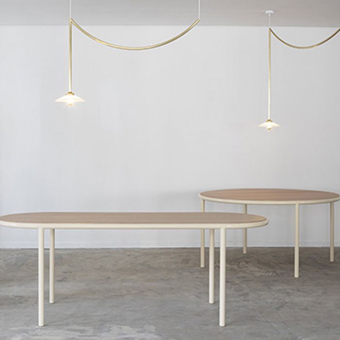 Avec Valerie_objects célébrant leur cinquième anniversaire, le duo de designers muller van severen a créé deux objets d'éclairage spéciaux qui créent l'ambiance festive. les plafonniers n°4 et n°5 reflètent la forme de guirlandes et de serpentines, dessinant des lignes ludiques et colorées dans l'espace.