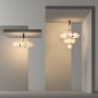 Planets de Lumen Center. Suspension en laiton bronzé et sphères en verre opale blanc brillant. La perfection sphérique comme archétype des planètes. PLANETS s'inspire et inspire leur attractivité exceptionnelle et leur allure éternelle.