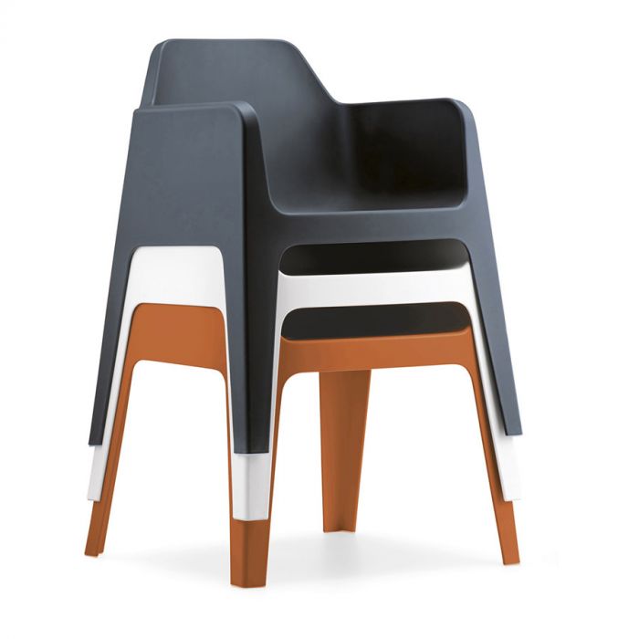 Simplicité, éclectisme et utilité pratique sont les caractéristiques de la chaise Plus. Valable soit pour l'intérieur soit pour l'extérieur, empilable, un vrai équilibre entre design et fonctionnalité. En polypropylène, finition mat, elle est disponible dans les coloris suivants: blanc, sable, gris anthracite et vert.