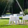 Les courbes et les surfaces originaires trouvent des nouvelles proportions pour offrir un comfort d'assise élevé. La caractère outdoor transparait aussi par les détails, comme l'ample trou de déchargement de l'eau, présent soit dans le fauteuil soit dans le canapé, qui devient aussi une prise de main utile pour faciliter le déplacement.