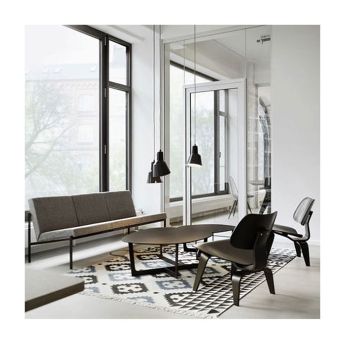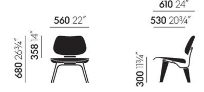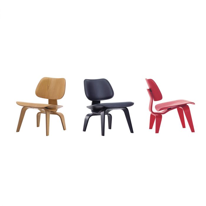 Au cours de nombreux essais réalisés pendant de longues années, Charles et Ray Eames étaient à la recherche de nouvelles techniques permettant d’adapter le mieux possible le bois stratifié moulé en trois dimensions à la silhouette du corps humain. La chaise LCW, dont l’assise et le dossier mais également le piétement sont en bois stratifié moulé, est désormais à nouveau disponible avec un revêtement de peau, tel qu’il avait été présenté en 1946 lors de son lancement sur le marché.