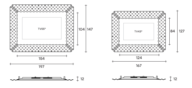 Taille 1 : L 167 x H 127 x Prof. 12 cm