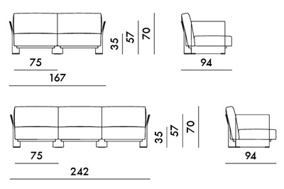 H 70 x larg. 242 x prof. 94 cm