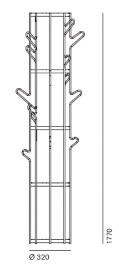 Albero, un projet au design linéaire et essentiel. Sa silhouette mince et minimale évoque une image d'une grande charge poétique. La conception graphique d'Albero mélange la fonction du cintre avec celle du conteneur d'étagère, transformant un objet du quotidien en une sculpture délicate.