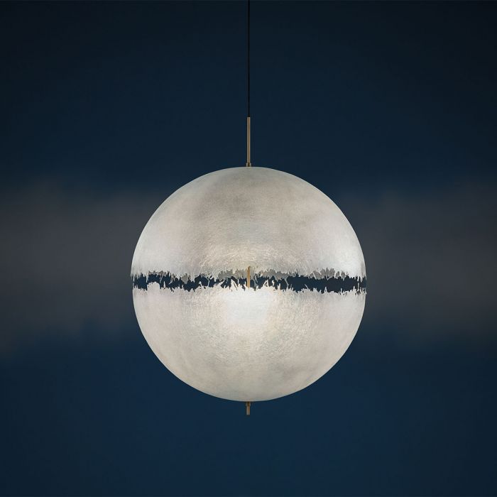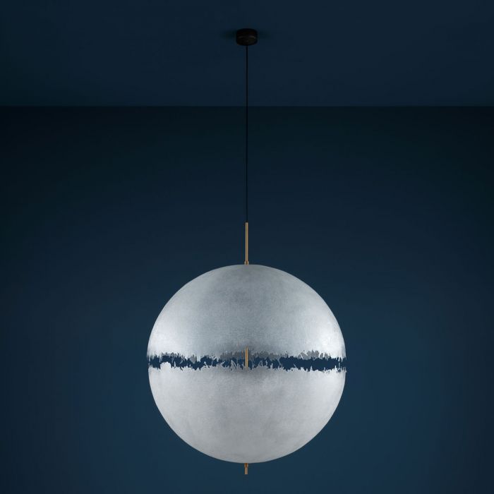 Matériaux : structure laiton, câble et base coloris noir, diffuseur fibre de verre naturelle