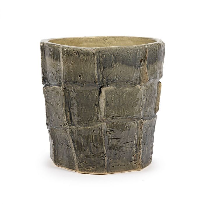 Pour Look At Me, l'artiste portugaise Bela Silva s'est une nouvelle fois inspirée de la nature. "Pour Look At Me en particulier, par l'énergie et le dynamisme émanant des plantes", précise-t-elle." Pour beaucoup de gens, les fleurs et plantes n'ont qu'une fonction décorative, mais c'est trop réducteur : elles affirment en effet vraiment leur présence. Elles respirent, bougent, aiment être au centre de l'attention. On peut les regarder sans se lasser. D'où le nom de la collection : Look at Me. La glaçure bleue-verte, fréquente dans son œuvre, et la finition brute qui paraissent si naturelle donnent aux pots de fleurs fière allure. Simultanément, ils gardent une évidente simplicité par leur forme géométrique et leur relief répétitif. Jamais on n'aura autant regardé les plantes. Ce cache-pot INDOOR est traité avec un mince revêtement étanche à l'intérieur, mais cela ne garantit pas une étanchéité à 100%. Par conséquent, nous vous recommandons de ne pas planter directement dans le pot, mais de placer la plante dans un pot en plastique + une soucoupe ou d'utiliser un sac en plastique à l'intérieur. Des fissures peuvent se former si la plante est plantée directement dans le pot.