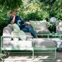Pouf bellevie - Gris de Fermob. Un pouf. Et paf ! On s’assied, ici, ou là. On le déplace pour rejoindre le cercle d’invités qui sont confortablement installés dans un salon de jardin Bellevie. Ou au contraire, pour s’isoler… s’adosser à un mur et bouquiner… Pratique ! En intérieur comme en extérieur, le pouf Bellevie navigue au gré de vos envies ! Sa légèreté le rend tellement facile à déplacer… Pour une méridienne stylée, accolez votre pouf à un fauteuil ou à un canapé Bellevie ! Le pouf Bellevie, c’est en effet un repose-pieds idéal ! La facilité d’entretien de la housse de son coussin est remarquable : 100% acrylique, traitée anti-taches et anti-moisissures, elle passe en machine, si besoin. La mousse d’assise de votre pouf design, à la fois ferme et confortable, garde tout son moelleux au fil des années. Elle ne craint pas non plus le mauvais temps ; rentrez néanmoins votre coussin en cas de gros orage !