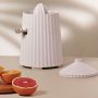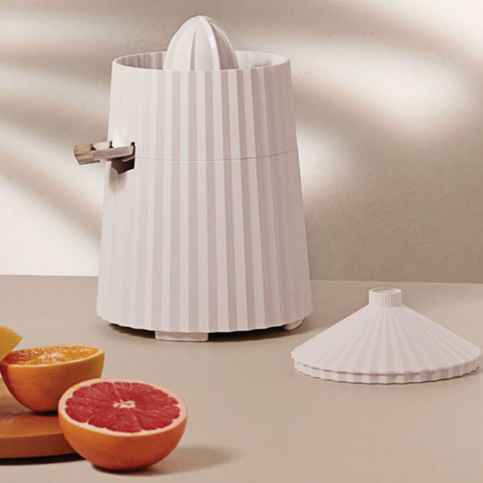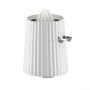 Presse agrume électrique plissé de Alessi par Michele De Lucchi. Le caractère unique des tissus plissés de la haute couture habille la série de petits électroménagers créés par Michele De Lucchi. La collection Plissé donne à l'environnement domestique une touche de légèreté raffinée. Le presse-agrumes électrique Plissé est une petite architecture domestique, à laisser en vue pour en apprécier son charme formel et évocateur. Parfait pour préparer des jus frais et désaltérants. Pratique à utiliser et facile à nettoyer.