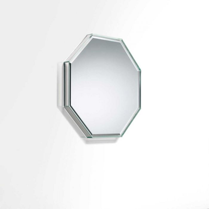 Miroirs précieux créé par Tokujin Yoshioka, pour Glas Italia, spécialiste du matériau pur, noble et raffiné qu'est le verre. de forme octagonale, ornés de cadres en cristal extralight 12 mm argentés, travaillés avec des biseaux brillants et facettes.
