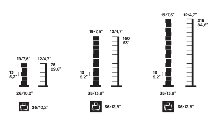 Taille 3 : H 215 x Prof. 35 x L 35 cm
