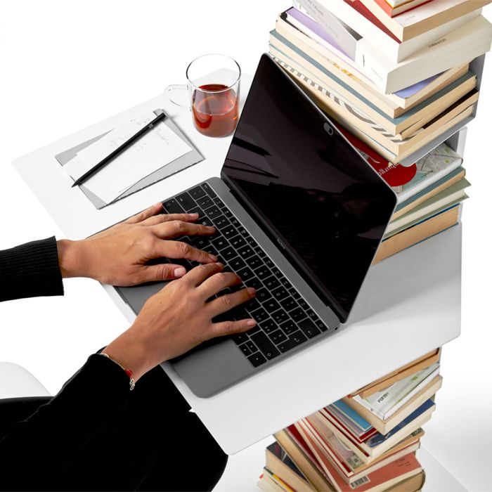 L'étagère Ptolomeo est un accessoire inattendu , une étagère légèrement plus grande qui se camoufle confortablement entre les étagères des bibliothèques Ptolomeo et amplifie ses usages. Petit bureau , car chaque coin est précieux quand il y a des pensées à écrire, mais aussi une table de chevet insolite , si vous décidez d'approcher le lit Ptolomeo, car même les livres pendant la nuit ont besoin de compagnie.