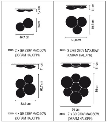 Taille 4 : 7 ampoules halogène G9 de 48W max