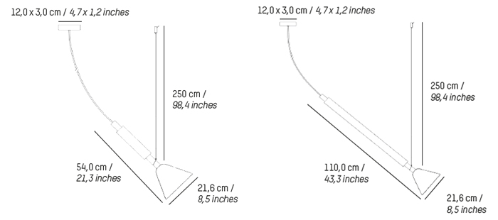 Les petites et grandes suspensions à diffuseur cloche sont disponibles en acier ou peintes en blanc, rouge et jaune. Modulables, elles offrent une diffusion précise grâce aux réflecteurs en cloche et aux filins orientables. La lumière, puissante et variable, peut mettre en valeur un objet, une œuvre ou un espace de travail. Équipées d’une LED intégrée remplaçable, ces suspensions allient durabilité et flexibilité.