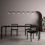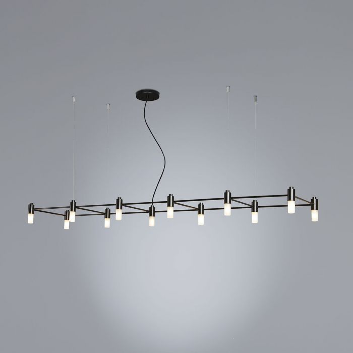 Modulaire, faite de tubes en acier soudés et noir mat, les configurations possibles sont nombreuses et créent un système de grilles lumineuses.
