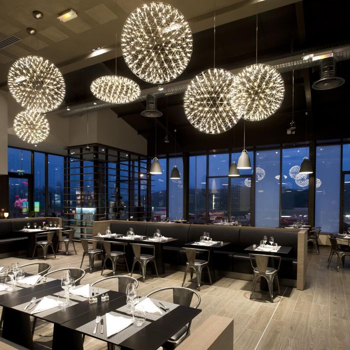 Raimond Zafu est une suspension design créée par Raimonds Puts avec OX-ID pour Moooi. Raimond Zafu contient 162 lampes LED. Regarder les étoiles est maintenant possible même pendant les nuits couvertes. Les sphères complexes de Raimond transportent le courant électrique. Les terminaux joignent alors ces chemins pour créer une ambiance atmosphérique.
