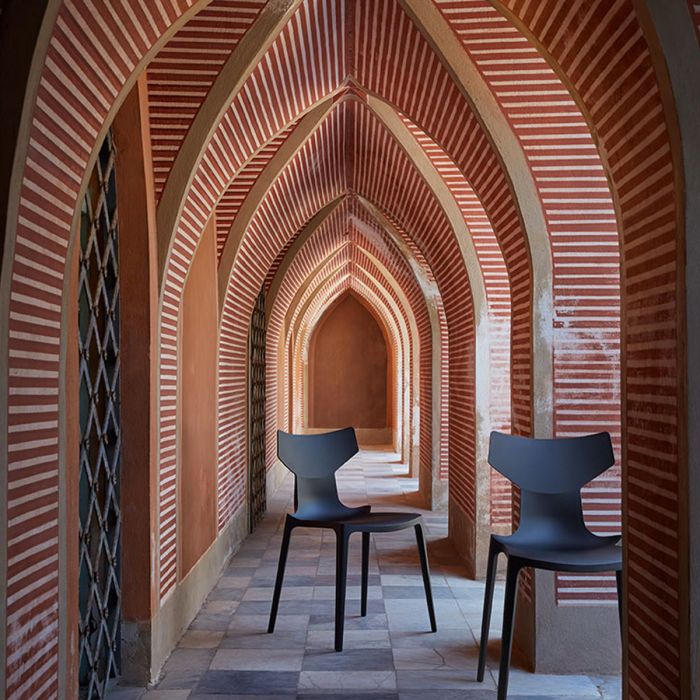 La collaboration avec Illy ne se limite pas à la simple fourniture de matériaux recyclés, elle incarne au contraire un nouveau modus opérande pour gérer le processus d’économie circulaire entre deux marques d’excellence. De la qualité d’un produit de grande consommation naît un projet industriel qui génère de la beauté et se fonde sur la qualité. Il a fallu près de deux ans de travail pour obtenir la norme de qualité et l’outillage nécessaire pour produit une chaise à partir de capsules de café usagées. Le symbole de ce projet est une chaise dont le nom la destine d’emblée à faire l’objet d’expérimentation sur les matières recyclées. Re-Chair est la toute dernière création d’Antonion Citterio pour Kartell. Déjà réalisée en matière recyclée, elle est aujourd’hui l’ambassadrice spéciale du projet powered by Illy taffé.