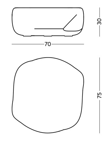 L 70 x Prof. 75 x H 30 cm