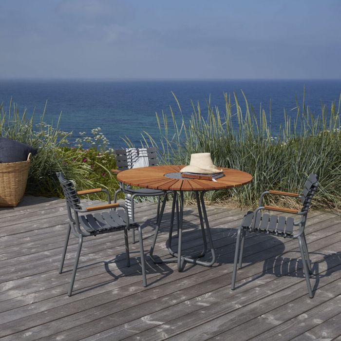 ReCLIPS est une chaise de salle à manger avec de larges lamelles en plastiques éclipsées sur un cadre en aluminium enduit de poudre légère. Les lamelles sont fabriquées à partir de déchets plastiques ménagers danois et produites au Danemark. La technologie de réutilisation des déchets ménagers en plastique pour la production de meubles est développée au Danemark. Donc, en regardant ReCLIPS, vous regardez essentiellement le résultat du mélange du design danois et de l’innovation danoise dans l’application de nouvelles idées et de nouveaux matériaux dans une chaise. Les chaises de salle à manger ReCLIPS sont disponibles en 4 couleurs mono avec le choix d’ajouter des accoudoirs en bambou. Le cadre en aluminium combiné avec les lamelles en plastique protégées contre les UV, réduisent au minimum l’entretien.