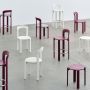 Inspirée de la collection Rey originale conçue par le designer suisse Bruno Rey en 1971, HAY s'est associée à Dietiker pour relancer la chaise Rey. Avec ses bords arrondis distinctifs et son dossier incurvé, elle a été la première chaise à être brevetée avec la connexion bois-métal sans vis unique de Dietiker et est devenue l'une des chaises suisses les plus réussies de tous les temps. Sa construction solide, sa résistance et sa conception empilable lui confèrent une qualité intemporelle qui la rend adaptée à une utilisation dans une grande variété d'environnements domestiques, publics ou professionnels. La chaise emblématique a été modifiée dans de nouvelles dimensions et combinaisons de matériaux pour s'adapter aux exigences du style de vie contemporain. Fabriquée en bois massif, elle est disponible dans des couleurs originales, ainsi que dans de nouvelles tonalités et options de siège rembourré sélectionnées par HAY. La collection Rey n'est pas disponible chez HAY en Suisse.