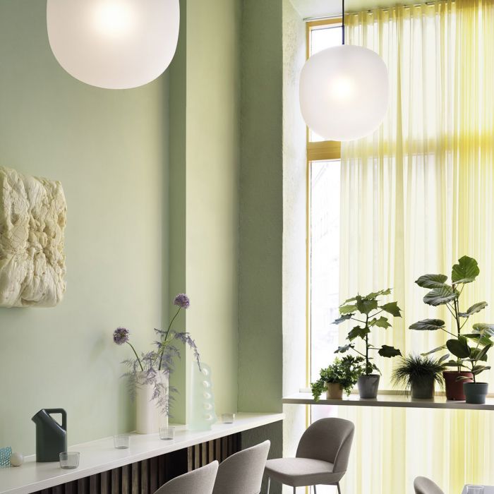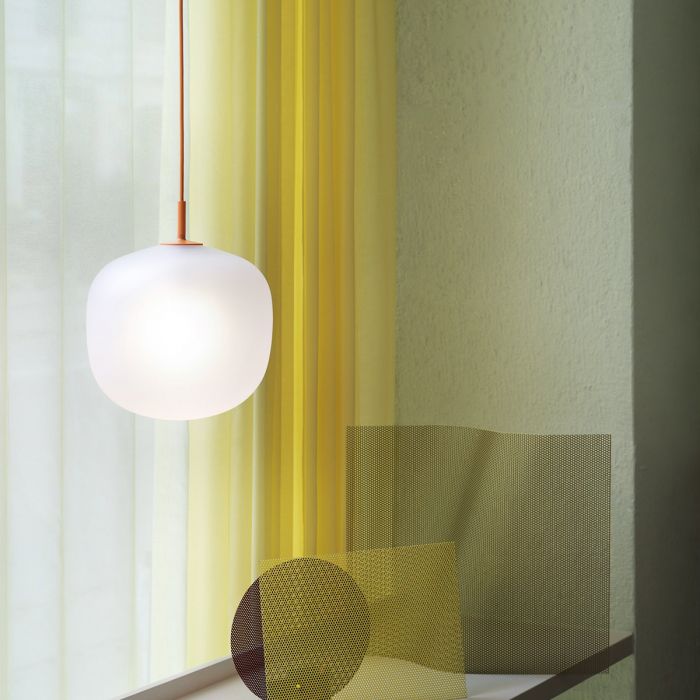 La suspension lumineuse Rime apporte une perspective élégante à la suspension en verre à travers son verre semi-transparent sablé pour une expression raffinée. Le design présente une forme caractéristique, inspirée de la forme des glands, complétée par sa partie supérieure revêtue de poudre, son tube suspendu et son cordon dans une couleur assortie pour une touche subtile. Le design est disponible quatre couleurs sur quatre tailles, vous permettant d’utiliser le design seul ou dans des formations linéaires ou des grappes ludiques pour un lustre moderne.