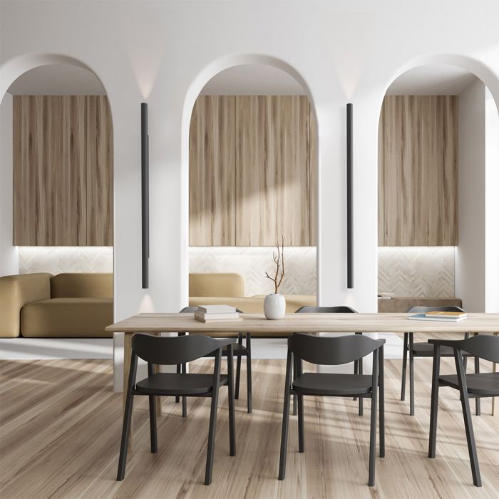 Rodi est une magnifique applique murale qui illumine non seulement tout espace, mais ajoute également une touche de raffinement et de grâce à l'ambiance. Fabriquée à partir d'un fer de qualité supérieur avec un revêtement noir mat élégant, la fonction d'éclairage haut-bas de Rodi crée un effet architectural époustouflant qui encadre magnifiquement les fenêtres et met en valeur les zones d'intérêt. Son design polyvalent en fait une option exceptionnelle pour divers environnements, des résidences privées aux hôtels, et il peut insuffler une touche de charme à n'importe quel couloir. Illuminez votre espace avec Rodi et élevez votre décoration au niveau supérieur.