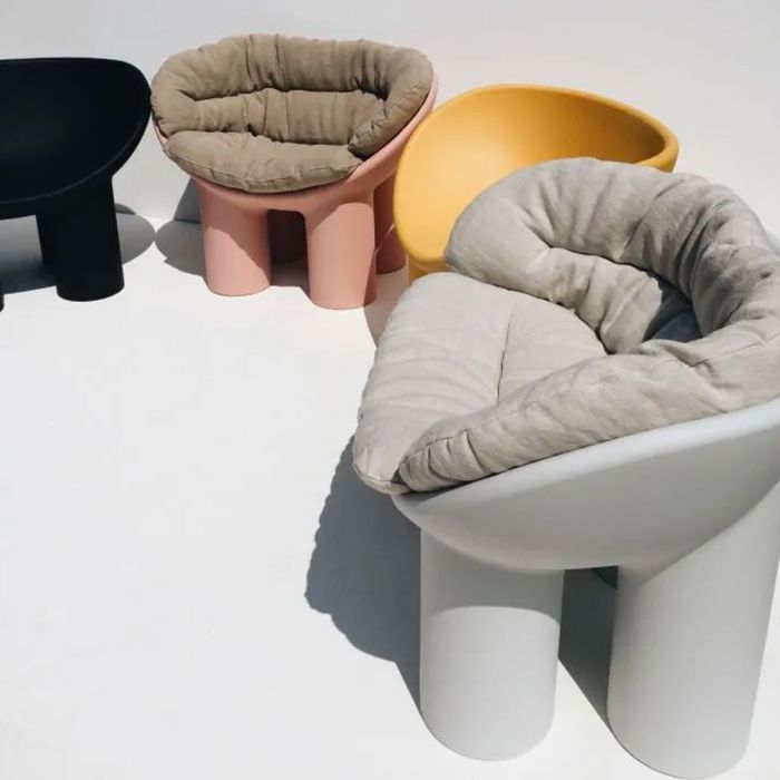 Les lignes massives et rassurantes caractéristiques de la collection de meubles roly poly de faye toogood deviennent encore plus captivantes dans sa nouvelle collaboration avec driade.