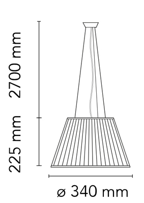 Matériaux : diffuseur intérieure verre borosilicate pressé acidifié, abat-jour extérieur en verre transparent moulé, écran anti-poussière en polycarbonate transparent, rosace au plafond en ABS blanc moulé par injection, attache plafond en acier moulé, câbles de suspension en acier