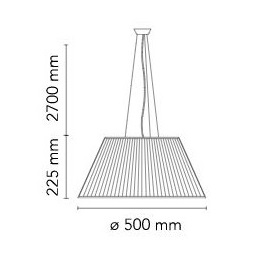 Matériaux : diffuseur intérieur en verre borosilicate pressé acidifié, abat-jour extérieur en verre transparent moulé, écran anti-poussière en polycarbonate transparent, rosace en ABS blanc moulé par injection, câbles en acier