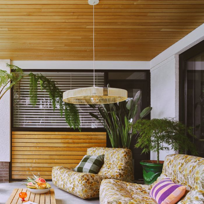 Lampe suspendue en corde d'une beauté extraordinaire en naturel avec une bande de terre.