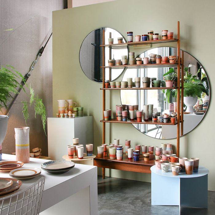 Miroir rond avec cadre en métal. Ils existent en deux tailles : 80 et 120 cm.
