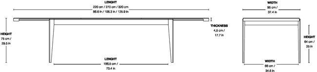 L 220 x H 95 cm extensible jusqu’à 320 cm