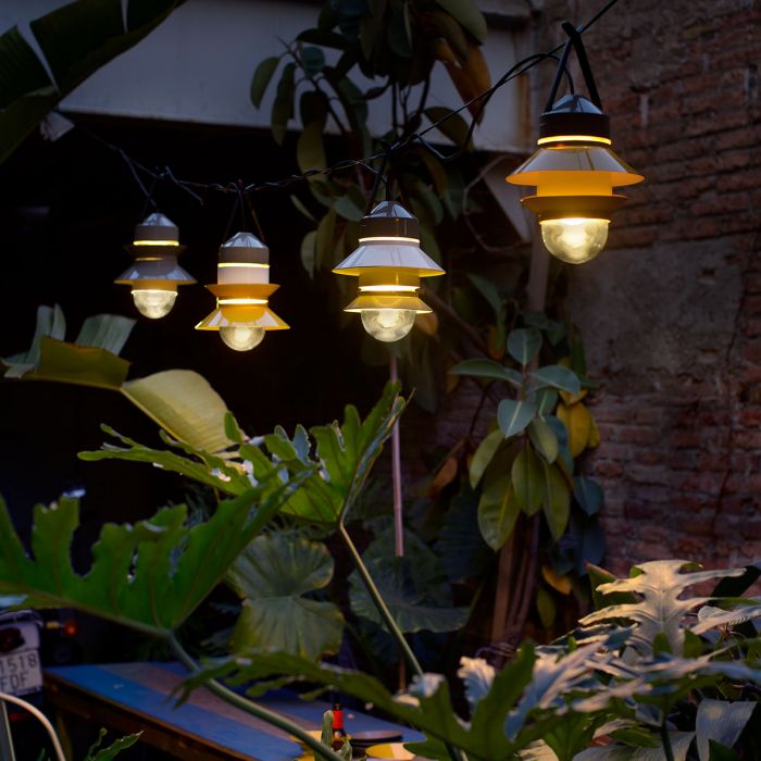 Inspiré par les lanternes trouvées sur les bateaux de pêche, Santorini cette collection de lampes extérieures personnalisables vous permet de créer de multiples compositions. Les utilisateurs peuvent choisir le nombre de nuances à placer sur le diffuseur, ainsi que leur ordre, la position et la direction. Ce jeu de combinaisons donne un riche éventail de lumières directes ou indirectes.
