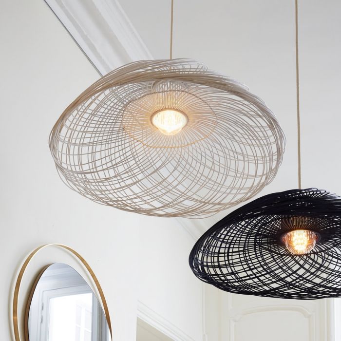 Satelise est une suspension ronde faite en matériaux naturels et designé par Elise Fouin. Grâce aux tiges de rotin, son jeu de lumières apportera de la légèreté et une ambiance chaude à vos intérieur.